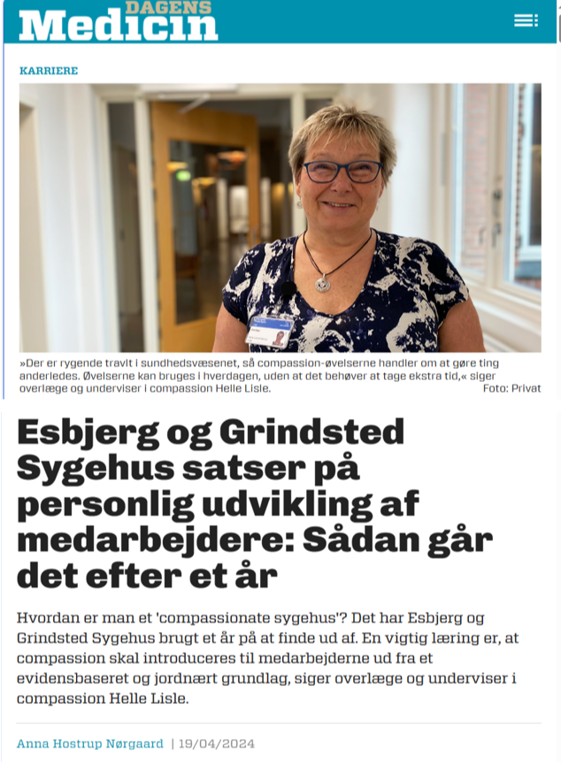 For et år siden besluttede det vestjyske sygehus, at de vil være et såkaldt compassionate sygehus. Det betyder, at compassion er en del af sygehusets værdisæt og strategi, og at alle medarbejdere skal på kurset ‘Compassion Træning for SundhedsProfessionelle’.